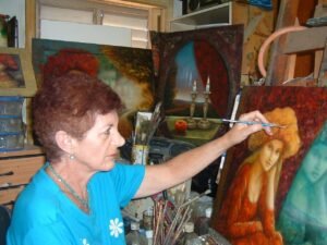 ציוריה, שבוצעו בטכניקת שמן קלאסית אך בשפה אישית לחלוטין, הוצגו בתערוכות רבות וזכו להכרה רחבה. גדולי היוצרים והמשוררים ביקרו בתערוכותיה, וראו בה אמנית בעלת קול ייחודי, שאינו נשען רק על שם האב אלא עומד בזכות עצמו.
