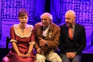 התלבושות שזוכות לנוכחות ברורה נעות על הגבול בין מציאות לקרקס. נאומים נישאים בהבעה מפוטמת מבטים מתחלפים במהירות. הסודות מבעבעים והכול עטוף בהומור שחור שמחליק בגרון רק כדי להיתקע רגע אחרי. השילוב בין הפשטות של הבמה לבין ההגזמה של הדמויות יוצר משחק מעניין בין קרבה לריחוק. הצופה נמשך פנימה אבל יודע שהוא מסתכל על עולם לא שפוי. אהה. בדיוק כמו במציאות שלנו.