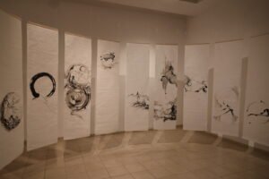 באולם השני שודו, אמנות הכתיבה. כל מילה היא ציור. האנרגיה של הכותב נוכחת ברגע הכתיבה. באחת מהיצירות מופיעה המילה מו. ריקות. מה שאומר, ראש ריק חופשי ומאפשר לראות דברים כפי שהם.