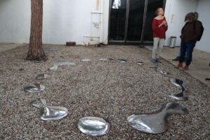 בגן החיצוני נמצאת יבוגתו של אמן יפני שחי בישראל, נבויה ימאגוצי, בן זוגה של האוצרת. זוהי עבודה של הליכה בין הטיפות.