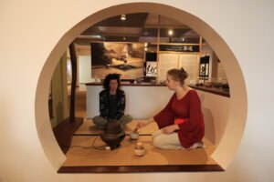 מעגל הזן טקס התה וואבי סאבי קעריות סדוקות יופי שבחוסר שלמות.