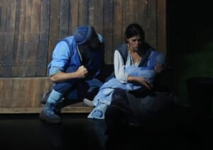 הילד המשתתף בהפקה, מעבר לחמידותו הטבעית, מוסיף רובד של אותנטיות. הוא נראה על הבמה כמי שנמצא שם באמת, כאילו הוא חלק מן העולם הזה ללא מאמץ. כשרואים אותו מצייר בחול, זה מרגיש כמו הצצה לעולם פנימי של ילד הנקלע למציאות אלימה, ממש כמו הילד בעולמה של גרושה. זהו רגע כמעט מטאפורי. הילד שבמחזה אינו יכול לדבר, אך הילד שעל הבמה מדבר דרך הציור.