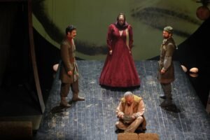 זה המקום להזכיר את העיצוב הכללי של הבמה. התפאורה בהפקה זו מושקעת מאוד, אך אינה מכבידה או משתלטת. במקום זאת, היא מאפשרת לעולם של המחזה לנוע ולהשתנות. תפאורת העץ, ההרים, רחובות הכפרים והארמון משרתים את הסיפור. הם אינם הולמים רק את התקופה הדמיונית של הקווקז, אלא גם את הרוח האפית של ברכט. הכל זורם. הכל משתנה. הדמויות נכנסות ויוצאות, מקומות מתחלפים, והקהל מרגיש שהוא עובר מסע יחד עם גרושה.