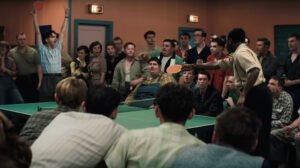 הבימוי מדגיש זאת היטב. משחקי טניס השולחן מצולמים כמאבקים פיזיים כמעט אלימים, חסרי נשימה. הכדור שחוזר הלוך ושוב יוצר תחושת לופ מתמשך ללא קו סיום ברור. זהו ייצוג מדויק של התודעה של מרטי עצמו, תודעה שאינה יודעת מנוחה ואינה מסוגלת לעצור ולשאול לשם מה.
