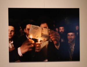 אחת מנקודות הכובד של התערוכה היא הזירה האזרחית. תומר אפלבאום מהארץ מציג הפגנה שבה חרדים שורפים צווי גיוס, בעוד צילום נוסף של מוטי מילרוד, גם הוא מהארץ, מתעד לוויה של חייל שנפל. שני קווים מקבילים, שתי מציאויות שמתקיימות באותו מרחב. הצילום של זוג שנלכד בין שוטרים וסוסים בעקבות רצח שישה ישראלים מוסיף רובד של תסיסה מתעצמת.