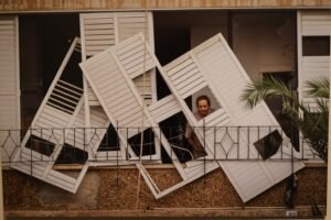צפריר אביוב מציג צילום של סורוקה ההרוס לאחר מתקפת הטילים מאיראן, ואבישג שאר יישוב, צלמת פורטרטים בדרך כלל, מתעדת סצנה מאז שנראית כמעט כמו עזה, אך מצולמת בארץ. לצידם צילומים נוספים שמציגים בתים שנפגעו מהטילים, מפונים וילדים משחקים בהפוגה בין הטילים.