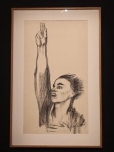 ​במרכז תערוכה זו עומדת היצירה והמסר האנטי מלחמתי של קתה קולביץ (1867, קניגסברג 1945, מוריצבורג). בשנות ה 20 של המאה ה 20 יצרה קולביץ סדרה של כרזות אנטי מלחמתיות, בהן "לעולם לא עוד מלחמה", שנוצרה לציון יום השנה העשירי להכרזת המלחמה של גרמניה על צרפת. בהדפס נראה עלם צעיר, שפיו הפעור בזעקה חושף שיניים וזרועו מונפת במחאה מלאת התרסה.